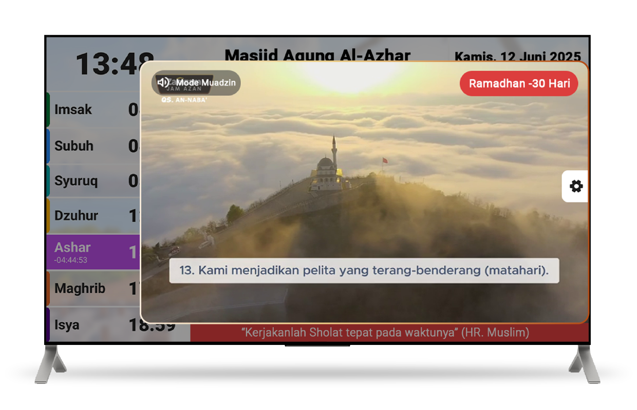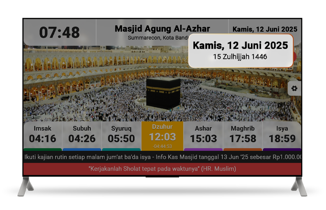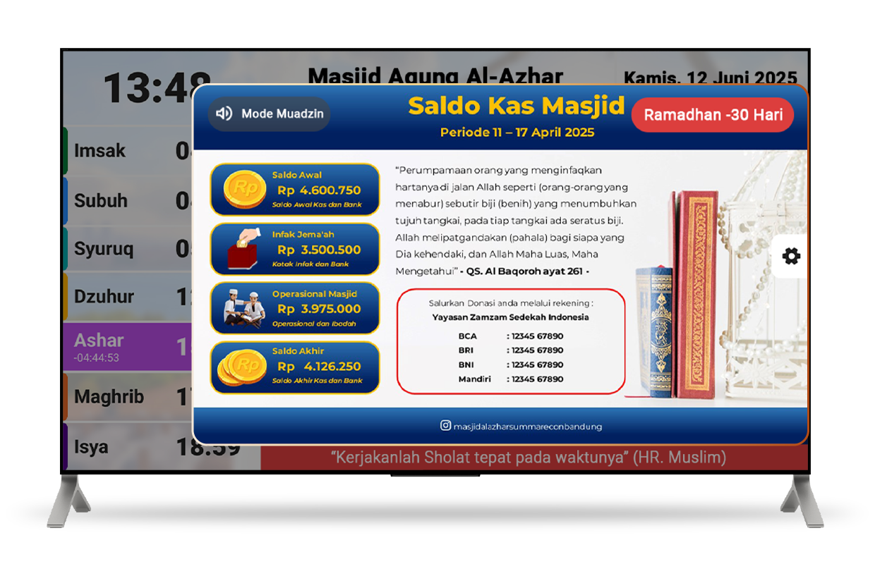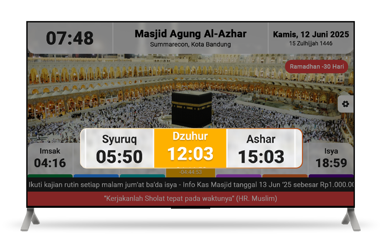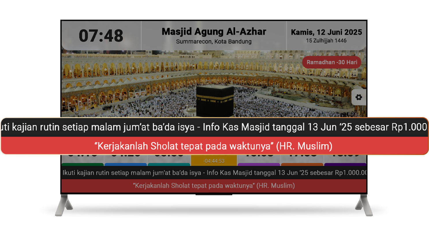 Menggunakan display dan software dengan teknologi terkini agar informasi masjid Anda terpusat dalam satu perangkat