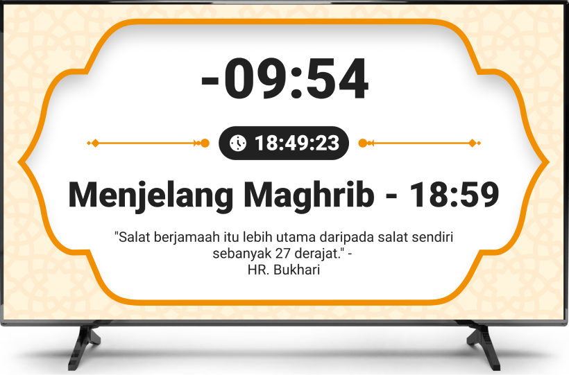 Dengan Jam Sholat TV, Anda bisa mendapatkan semua manfaat untuk kebaikan masjid Anda. Akurasi jadwal shalat selalu terjaga, semua informasi terpusat dalam satu perangkat. Tersedia dalam tiga ukuran, silahkan pilih sesuai kebutuhan.